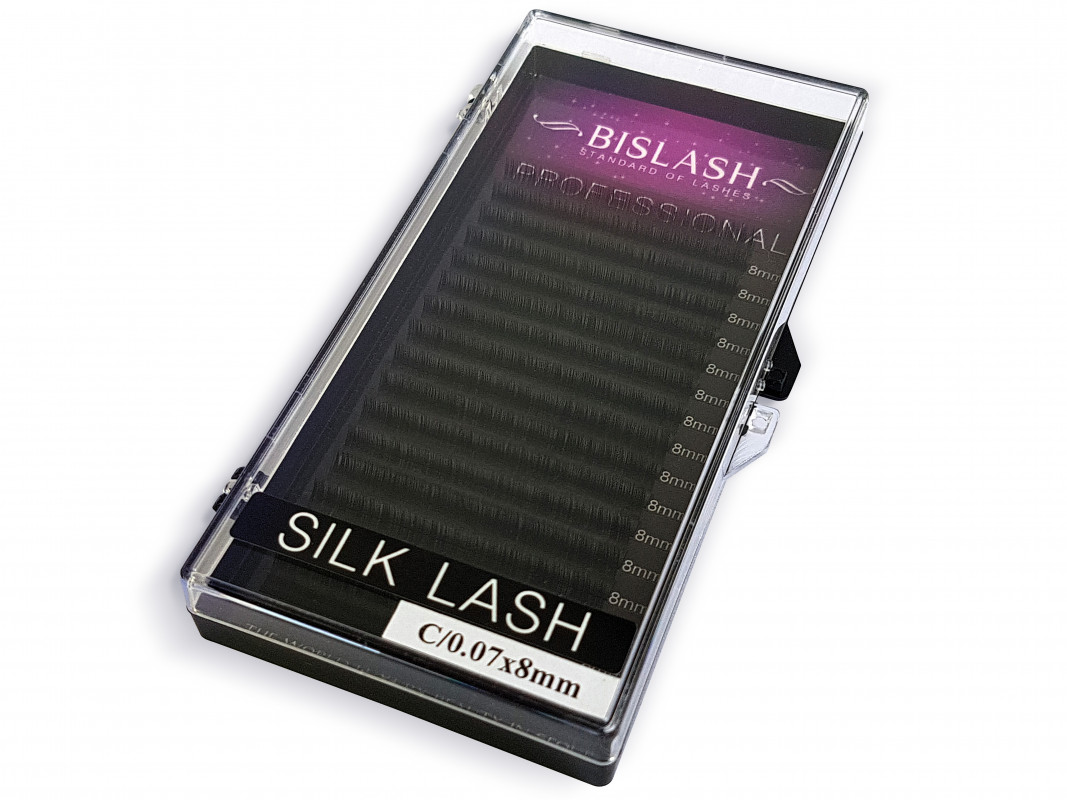 Silk Lashes "Seidenwimpern" der Marke BISLASH sind Wimpernaufsätze der gehobenen Klasse. Silk Lashes werden in der Produktion mit einer zierlichen Silikonschicht umhüllt. Sie sind weich und haben einen leichten Glanz, der besonders die schwarze Farbe unterstreicht. Sie lassen sich gut von der Streife entnehmen und werden dabei nicht umgeknickt. Diese Wimpernstreifen sind ohne Klebebandbefestigung auf einer Platte gut fixiert. Wimpern der Marke BISLASH schaffen ein wunderschönes Volumen ohne dabei die eigenen Wimpern zu belasten. In einer Box befinden sich 16 Streifen, die alle nach der Länge gekennzeichnet sind. Dadurch wird die Arbeit mit diesen sehr erleichtert und Längen werden nicht durcheinander gebracht. Diese Wimpern sind resistent gegen Temperaturschwankungen.